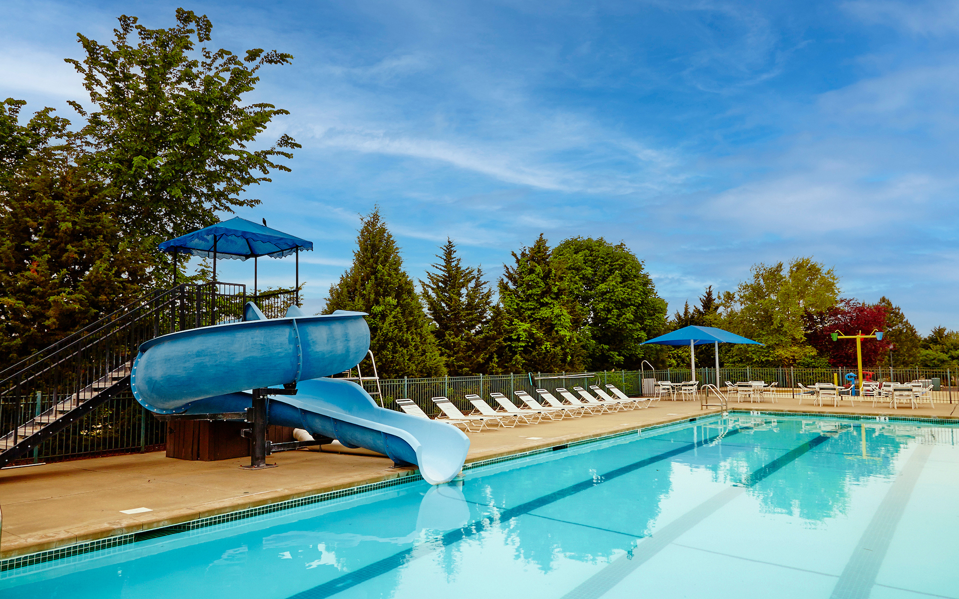 Our pool offers a slide and lounge seating plus lessons and programs that will make your kids love the water.